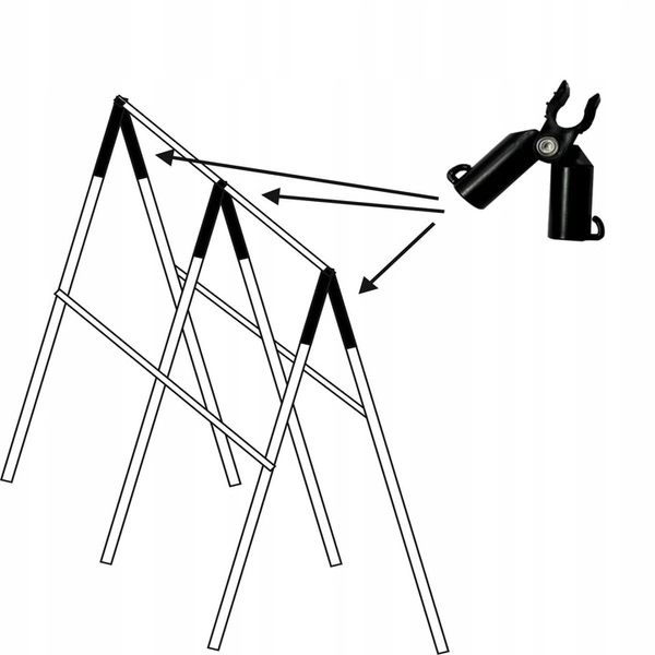 - Wsuń tyczki do łącznika równomiernie, aby zapewnić stabilność konstrukcji.