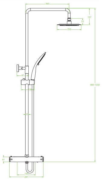 Kolumna natryskowa Fino posiada regulację wysokości górnej deszczownicy, co pozwala idealnie dopasować produkt do użytkownika. Słuchawka posiada trzy tryby pracy: deszczowy, masujący i mieszany. Bateria termostatyczna zachowuje stałą temperaturę wody, co stanowczo poprawia bezpieczeństwo użytkowania, zwłaszcza w przypadku dzieci i osób starszych.