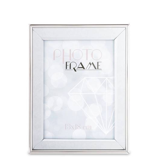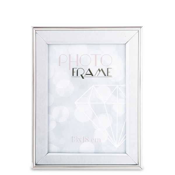 Stylowa ramka na zdjęcie z lustrzaną powierzchnią i eleganckimi srebrnymi rantami. Nowoczesna, a zarazem uniwersalna – doskonale podkreśla zdjęcia i pasuje do różnych wnętrz. Idealna na prezent lub jako dekoracyjny akcent.