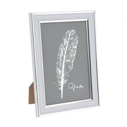 Ramka na zdjęcie biała srebrne ranty 15 x 20 cm