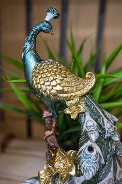 Ustaw figurkę pawia na komodzie w salonie, obok ulubionych świec lub wazonu z kwiatami, aby stworzyć elegancki, spójny kącik dekoracyjny. Doskonale zaprezentuje się również na konsoli w przedpokoju, witając domowników i gości subtelnym, artystycznym akcentem.