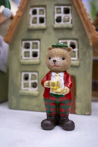 - Figurka Miś złoty w czerwonym garniturze złota szklanka w ręku 12,5cm