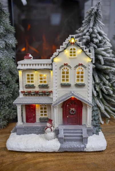 Postaw domek LED w salonie, by stworzyć nastrojowy kącik na zimowe wieczory lub ustaw go w dziecięcym pokoju, gdzie stanie się bajkową lampką nocną. To także przepiękna ozdoba świątecznego stołu, komody lub parapetu. W okresie Bożego Narodzenia doskonale dopełni tradycyjne dekoracje, a przez cały rok doda wnętrzu odrobiny magii i ciepła.