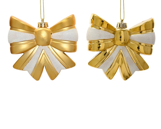 Bombka Kokarda biało-złota połysk/mat to niezwykła ozdoba świąteczna, która zachwyca subtelnym połączeniem bieli i złota. Jej kształt delikatnej kokardy dodaje wnętrzu lekkości i elegancji, a wybór między wersją matową i błyszczącą pozwala dopasować ją do każdego stylu – od klasycznego, przez glamour, aż po nowoczesne aranżacje. To dekoracja, która przyciąga wzrok i wprowadza do domu ciepły, świąteczny nastrój. Idealna na prezent lub jako wyjątkowy akcent wśród świątecznych ozdób.