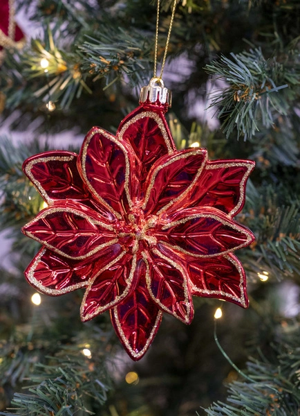 - Bombka kwiat czerwona ze złotym brokatem 14,5 cm 1 sztuka