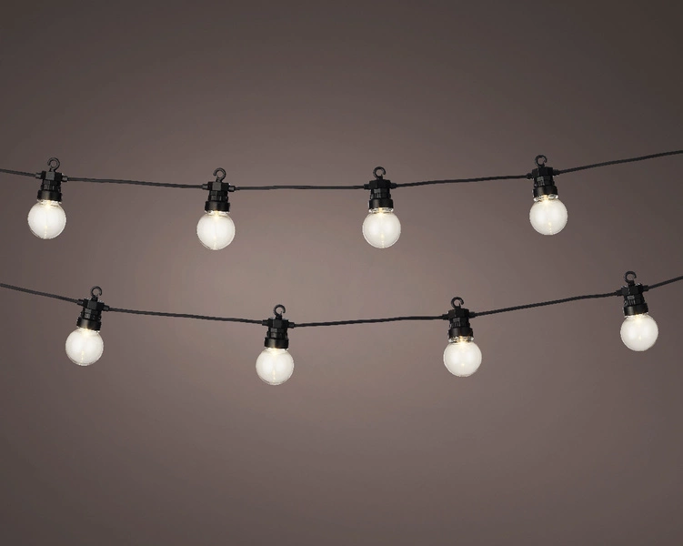 Stylowa girlanda świetlna LED z 20 żarówkami o średnicy 4,5 cm, rozmieszczonymi na długości 9,5 metra. Emituje ciepłe białe światło, idealne do tworzenia klimatycznego nastroju w ogrodzie, na tarasie. Przeznaczona do użytku zewnętrznego i wewnętrznego. To elegancka i funkcjonalna ozdoba świetlna, która sprawdzi się przez cały rok.