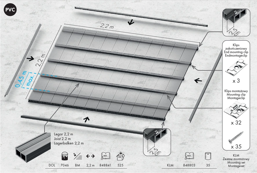 - Idealne dopasowanie do systemów tarasowych z desek PCV.