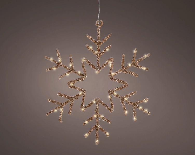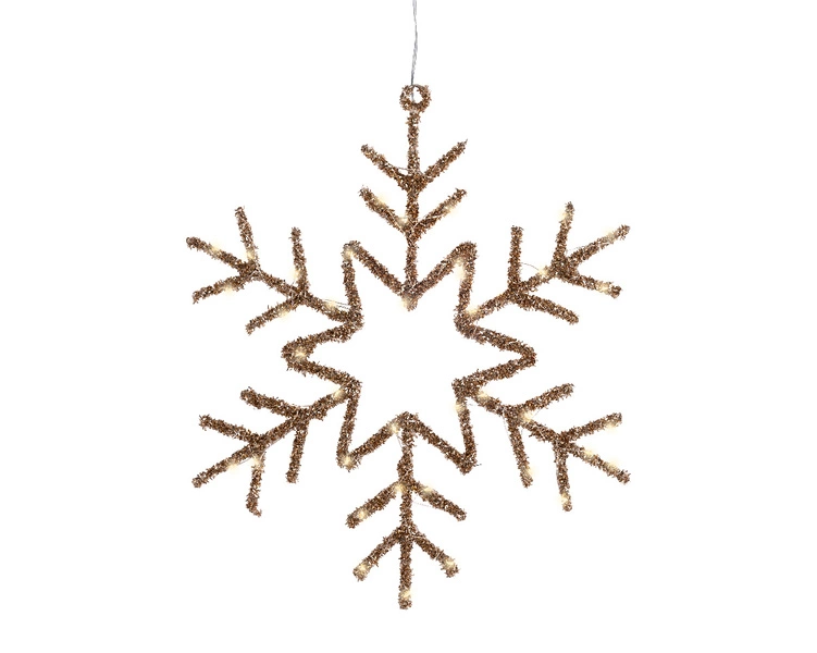 Płatek śniegu zew/wew LED złoty /ciepły biały 38 cm