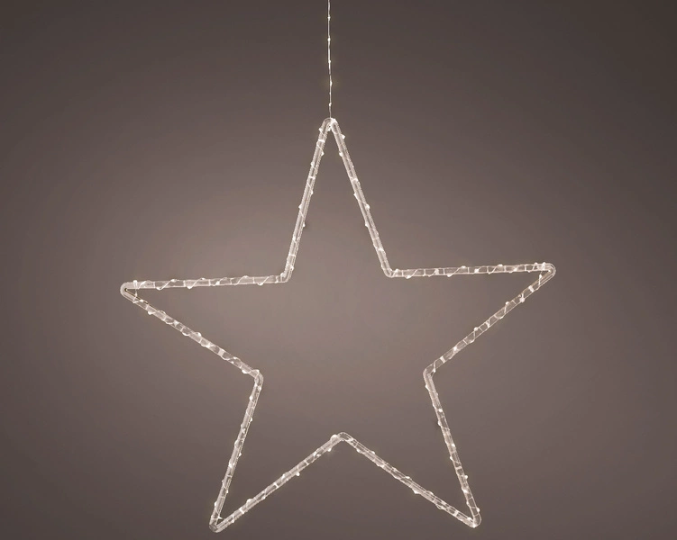 Duża gwiazda LED o średnicy 58 cm świecąca ciepłym białym światłem. Idealna jako efektowna dekoracja świąteczna do zawieszenia w oknie, na ścianie, drzwiach lub balkonie. Tworzy przytulną atmosferę dzięki subtelnemu światłu LED. Zasilana bateryjnie (3x AA – brak w zestawie), nie wymaga dostępu do prądu, co pozwala na swobodne umiejscowienie. Lekka, trwała i energooszczędna – doskonała ozdoba na święta.