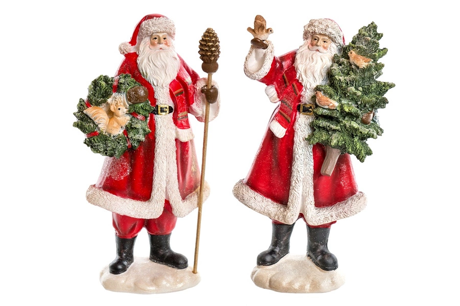 - Mikołaj ceramiczny w czerwonym płaszczu z choinką/wiankiem 29cm 2 wzory