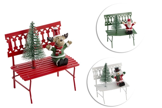Dekoracyjna metalowa ławka w trzech kolorach do wyboru: czerwona, zielona lub biała. Idealna jako element świątecznej scenki z figurkami lub jako samodzielna ozdoba do wnętrza. Wykonana z metalu, stabilna i dopracowana w detalach. To stylowy dodatek, który wzbogaci każdą świąteczną aranżację stołu, komody czy półki.