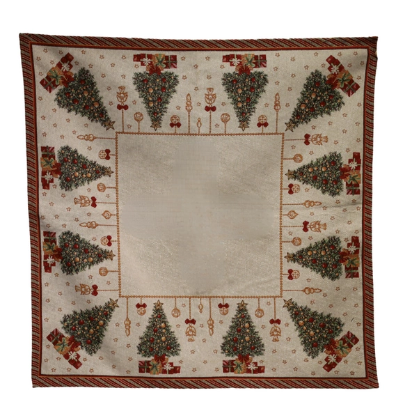 - Świąteczny Obrus 85x85cm Choinka, zwisające bombki, bordowa obramówka