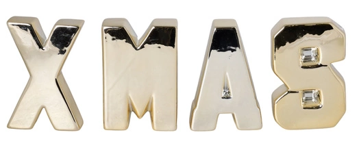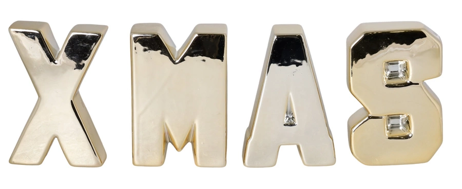Elegancki napis „XMAS” wykonany z ceramiki w złotym wykończeniu. Kompaktowy rozmiar 8x12 cm sprawia, że dekoracja idealnie nadaje się na komodę, półkę, parapet lub stół świąteczny. Błyszcząca powierzchnia pięknie odbija światło, nadając wnętrzu elegancki i świąteczny charakter. To klasyczna, a zarazem nowoczesna ozdoba, która uzupełni każdą bożonarodzeniową aranżację. Doskonała również jako mały prezent lub dodatek do upominku.