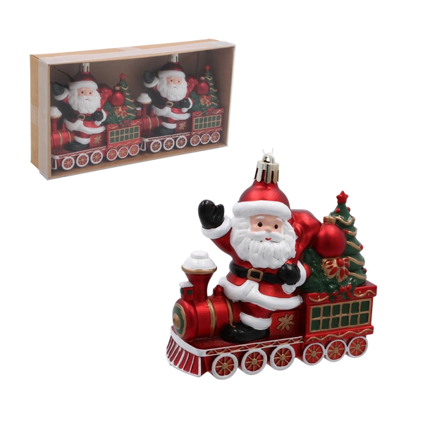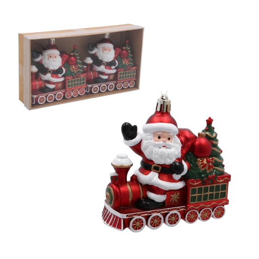 Bombki Mikołaj na ciuchci czerwono-zielone 2sztuki 10cm w pudełku