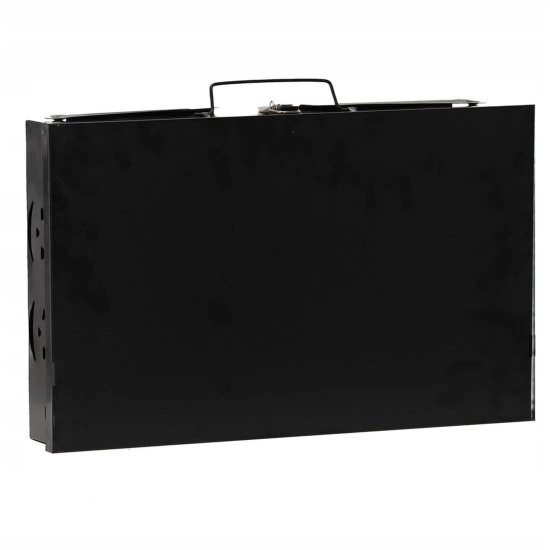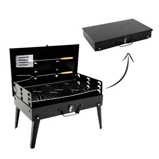 - Grill piknikowy walizka z widełkami i łopatką czarny 44x23x48 cm