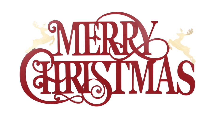 Efektowny napis „Merry Christmas” wykonany z metalu, utrzymany w świątecznej czerwieni i ozdobiony dwoma złotymi reniferami. Ma aż 79,5 cm długości i 44 cm wysokości, dzięki czemu stanowi wyrazistą dekorację do wnętrz, witryn sklepowych czy biura. Solidna konstrukcja i klasyczna kolorystyka sprawiają, że idealnie wpisuje się w świąteczny klimat. Dekoracja do postawienia - przyciąga wzrok i wprowadza bożonarodzeniową atmosferę.