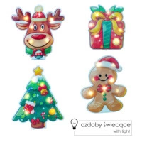 - Naklejka żelowa na okno LED biały ciepły prezent/renifer/choinka/ciastek