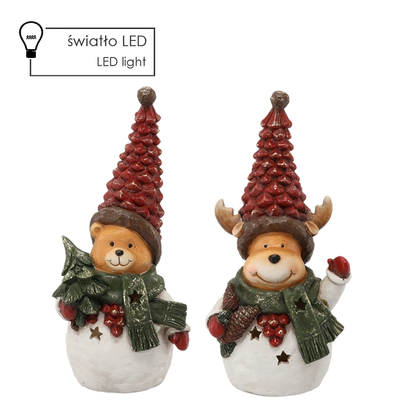 - Miś/Renifer ceramiczny LED biały, czerwona czapa choinka 36cm