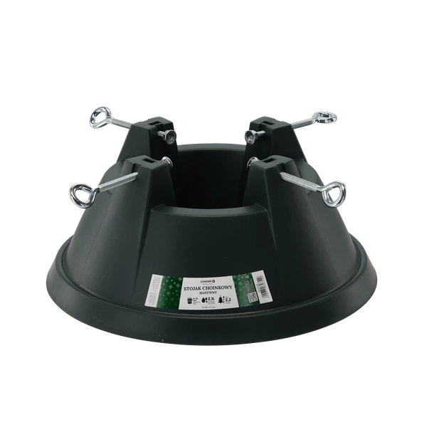 Solidny stojak do choinki wykonany z trwałego tworzywa sztucznego w kolorze zielonym. Wyposażony w 4 stabilizujące wkręty oraz pojemnik na wodę, który pozwala zachować świeżość drzewka na dłużej. Idealny do choinek o wysokości do 2,2 metra i średnicy pnia od 5 do 12 cm. Niezastąpiony element świątecznych dekoracji w domu i biurze.