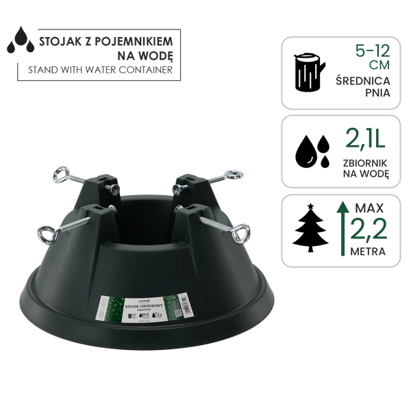 - Stojak do choinki plastik 4 wkręty max 2,2m zielony z pojemnikiem na wodę 5-12cm