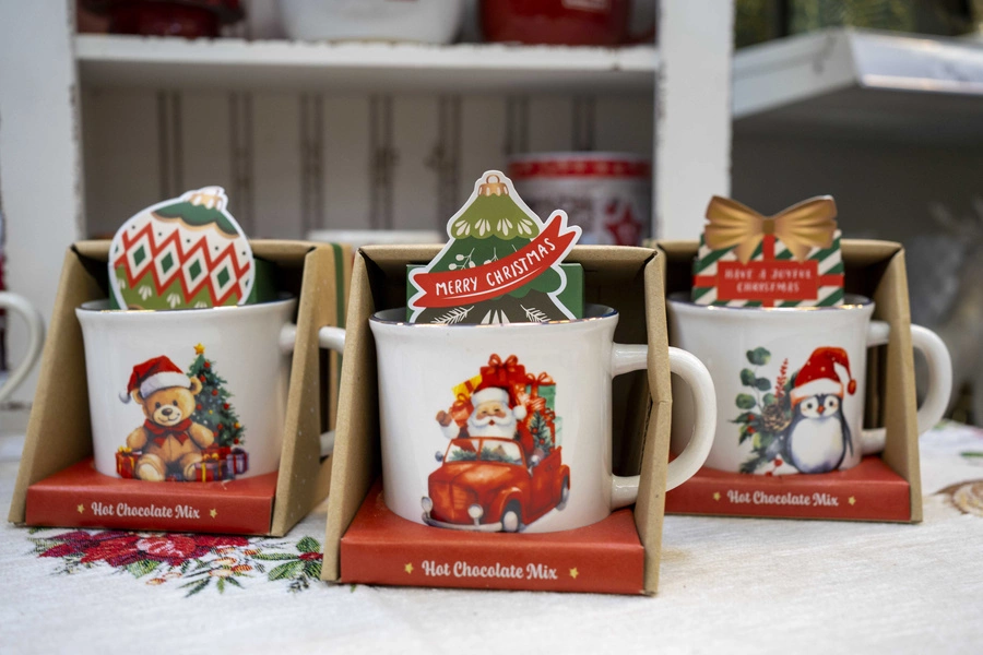 Odkryj kubek ceramiczny z uroczymi motywami Pingwina, Misia lub Mikołaja – drobny dodatek do domu, który od pierwszego łyku wprowadza ciepło i świąteczny nastrój. Gładka, połyskująca glazura przyjemnie otula dłonie, a wygodne ucho sprawia, że każdy poranek z kawą, herbatą czy kakao staje się chwilą relaksu. Całość zamknięta jest w eleganckim kartoniku z dołączoną saszetką gorącej czekolady, dzięki czemu to gotowy, pełen uroku prezent.