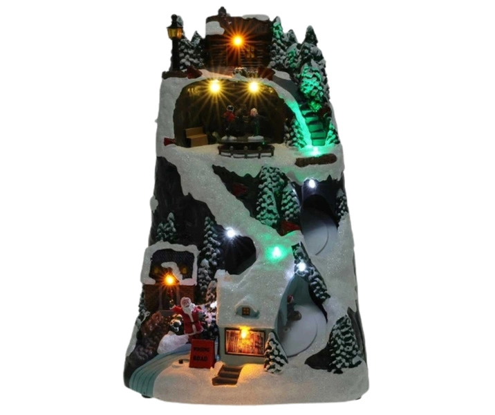 - Kompozycja: zimowy stok narciarski z ruchomymi elementami dla efektu „żywej” sceny.