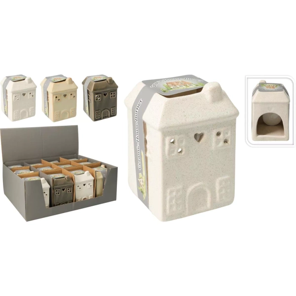 Kominek ceramiczny domek biały/beżowy/szary 10cm