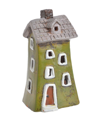 - Domek Holenderski T-light krzywy, zielony, szary dach 23cm