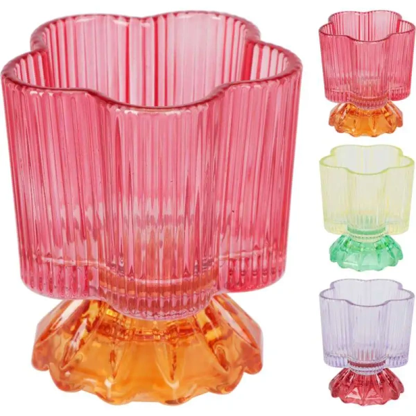 - Świecznik szklany kwiat na T-light czerwony/żółty/fioletowy