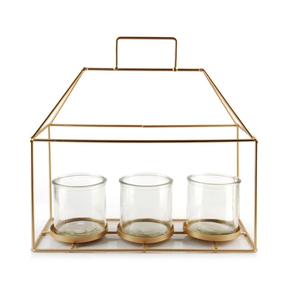 - Świecznik metalowy domek złoty 3 szklaneczki 30x12x31cm