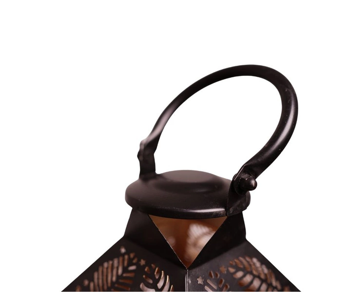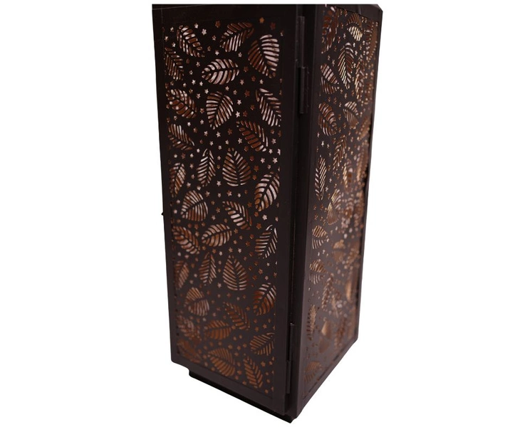 - Lampion metalowy czarny ażurowe listki/gwiazdki 16x16x50 cm