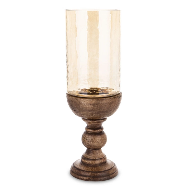 - Świecznik drewniany MANGO z bursztynowym kloszem 45 cm