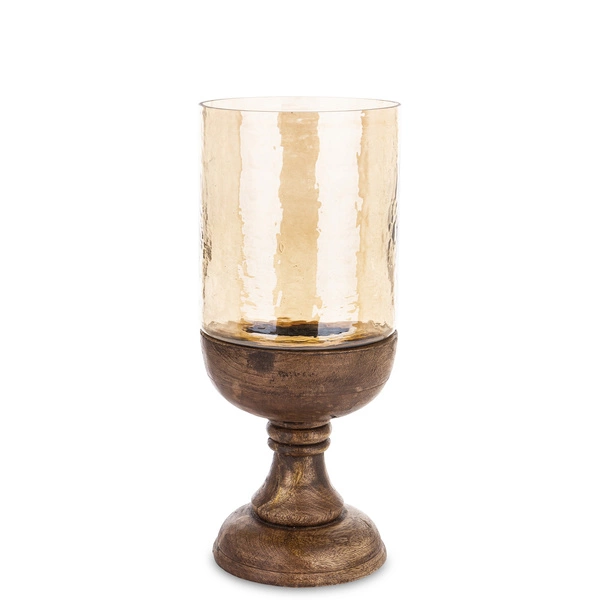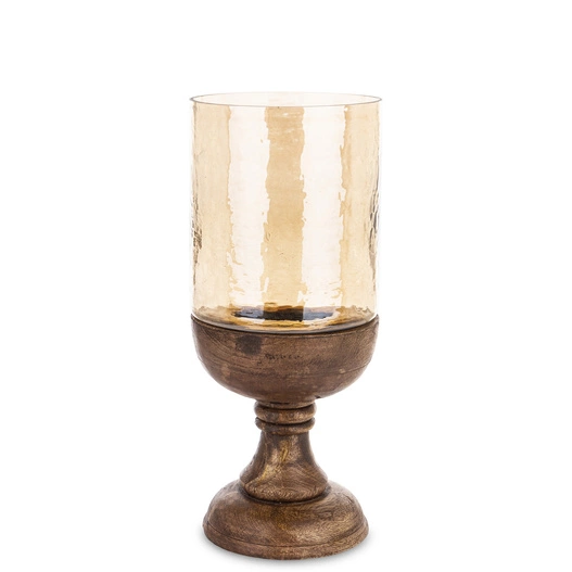 - Świecznik drewniany MANGO z bursztynowym kloszem 45 cm