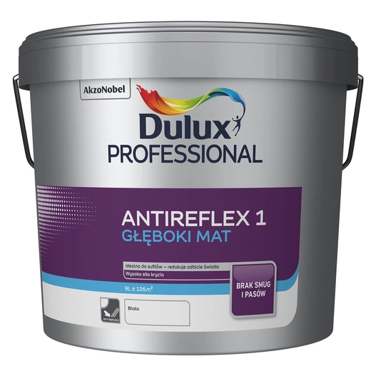 - Antyrefleksyjna biała farba lateksowa Anti-Reflex Pro 9L Dulux