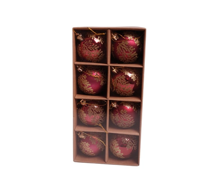 - Bombki burgund połysk/matowe wzór listki 8 sztuk 6 cm