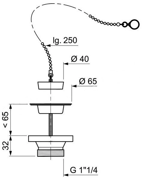 - Korek o średnicy 40 mm z łańcuszkiem – wygodne zamykanie i otwieranie odpływu.