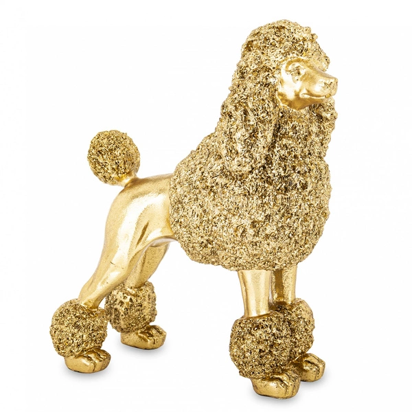 Figurka Pudel złoty stojący doskonale odnajdzie się jako ozdoba salonu, sypialni lub gabinetu. Może stać się centralnym punktem na komodzie, półce lub parapecie, dodając blasku każdemu wnętrzu. Wspaniale sprawdzi się także podczas świąt, tworząc przytulny, ciepły klimat, albo jako uroczy akcent wśród ogrodowych dekoracji podczas letnich przyjęć. Z łatwością podkreśli wyjątkowy charakter każdej przestrzeni i wprowadzi do niej radosny nastrój.