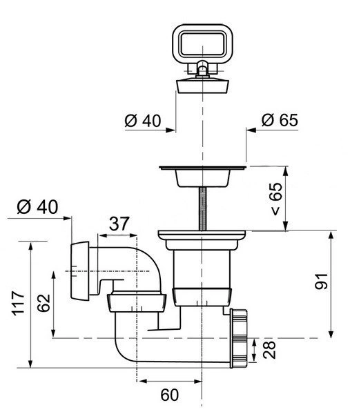 - Korek ø47mm z uchwytem – wygodne i szybkie zamykanie oraz otwieranie odpływu.