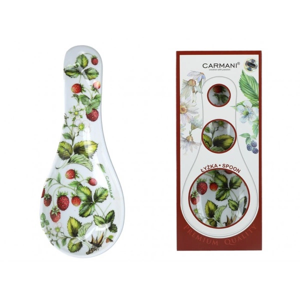 Łyżka na sztućce poziomki Carmani to połączenie funkcjonalności z wyjątkowym designem. Uroczy nadruk poziomek sprawia, że produkt doskonale prezentuje się na blacie kuchennym, a jednocześnie skutecznie chroni powierzchnię przed zabrudzeniami podczas gotowania. Idealna do odkładania łyżek, widelców czy łopatek w trakcie przygotowywania posiłków. Dzięki niej utrzymasz czystość i porządek w swojej kuchni, a jednocześnie dodasz jej niepowtarzalnego uroku.