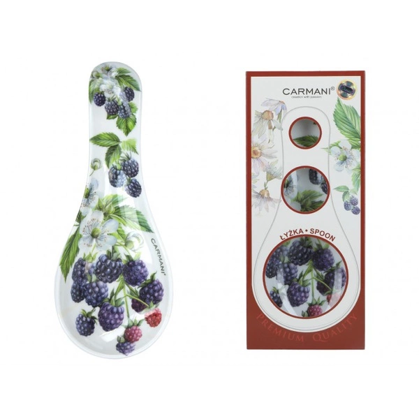 Łyżka na sztućce jeżyna Carmani to stylowe i funkcjonalne akcesorium kuchenne, które zachwyca eleganckim nadrukiem z motywem jeżyny. Dzięki niej wygodnie odłożysz używane podczas gotowania łyżki, widelce czy noże, chroniąc blat przed zabrudzeniami. Idealnie sprawdzi się zarówno podczas codziennego gotowania, jak i w trakcie rodzinnych spotkań, dbając o porządek i estetykę Twojej kuchni. Wyjątkowy design sprawia, że łyżka staje się również dekoracyjnym akcentem na kuchennym stole.