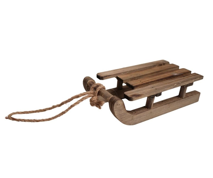 Dekoracyjne sanie wykonane z drewna w brązowym, opalanym wykończeniu. Idealne do aranżacji świątecznych - można je ustawić na stole, komodzie lub parapecie, wypełniając drobnymi dekoracjami. Rustykalny, naturalny wygląd wprowadza przytulny, zimowy klimat i pięknie komponuje się z innymi bożonarodzeniowymi dekoracjami.