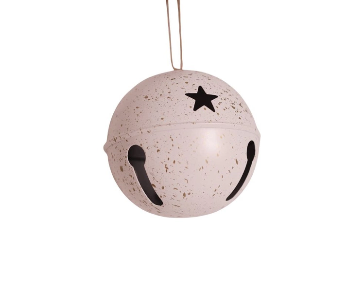 Duża, dekoracyjna kula wykonana z metalu w białym kolorze z wyciętymi wzorami. W środku kuli umieszczono janczary. Idealna jako efektowny element świątecznej aranżacji. Połączenie trwałego materiału z eleganckim wykończeniem sprawia, że kula wprowadza do wnętrza wyjątkowy, świąteczny klimat.