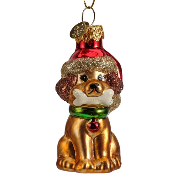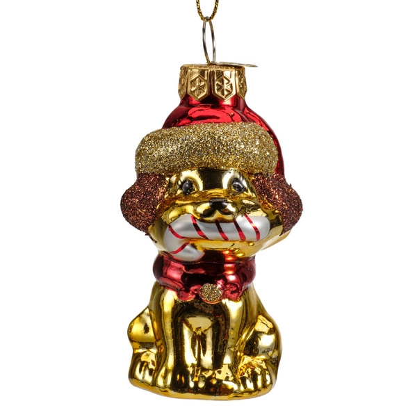 - Bombka szklana 1sztuka Pies złoty/biały/brąz 3wzory 7cm