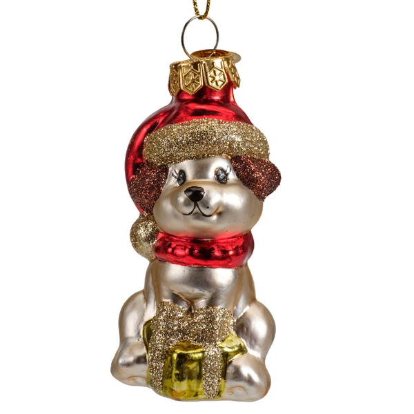 Szklana bombka choinkowa w kształcie psa to urocza ozdoba, która wprowadzi ciepły, rodzinny klimat do świątecznych aranżacji. Dostępna w trzech kolorach - złotym, białym i brązowym – idealnie komponuje się z klasycznymi i nowoczesnymi dekoracjami. Wysokość 7 cm sprawia, że doskonale prezentuje się zarówno na dużych, jak i mniejszych choinkach. Świetny pomysł na prezent dla miłośników zwierząt.