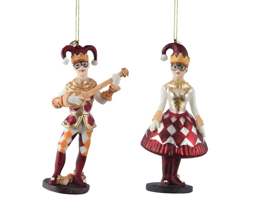 Bombka szklana 1sztuka Cyrk Joker On/Ona czerwono-biało-złote 14cm