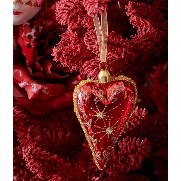 Bombka szklana Serce czerwone lub fioletowe z diamentami to dekoracja, która zachwyca elegancją i subtelnym urokiem. Delikatne szkło, misternie uformowane w kształt serca, mieni się w świetle dzięki połyskującym zdobieniom przypominającym diamenty. Ciepłe odcienie czerwieni lub tajemniczego fioletu pięknie komponują się zarówno z klasycznymi, jak i nowoczesnymi wnętrzami, nadając im wyjątkowy, świąteczny klimat. To nie tylko ozdoba – to detal, który tworzy przytulną atmosferę i sprawia, że każdy moment staje się bardziej wyjątkowy.