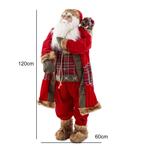 Mikołaj czerwony sztruks z workiem prezentów 120 cm