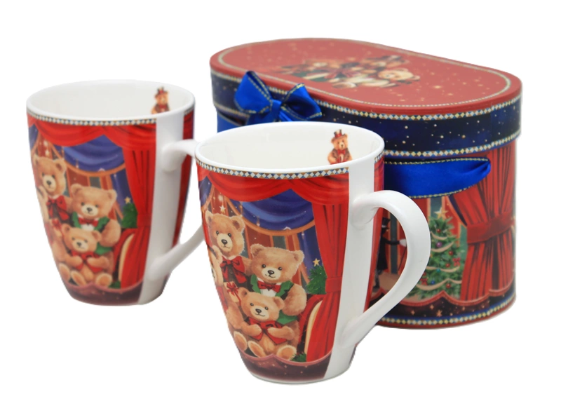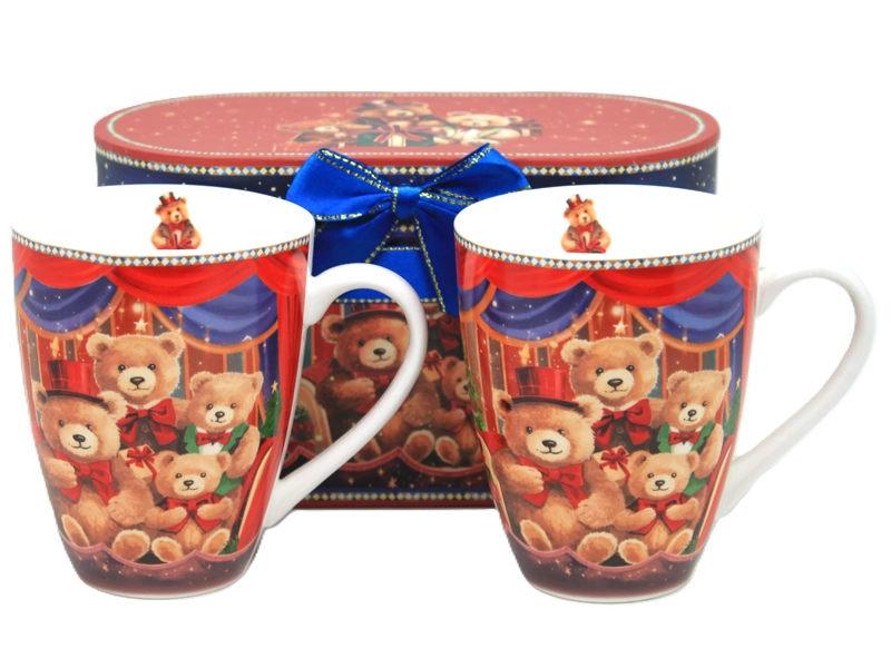 Uroczy zestaw dwóch kubków ceramicznych o pojemności 350 ml, ozdobionych motywem sympatycznych misiów. Idealne na kawę, herbatę czy kakao, świetnie sprawdzą się w codziennym użytkowaniu oraz jako świąteczny prezent. Elegancko zapakowane w pudełko, stanowią gotowy, efektowny upominek i wprowadzają do wnętrza przytulny, ciepły klimat.