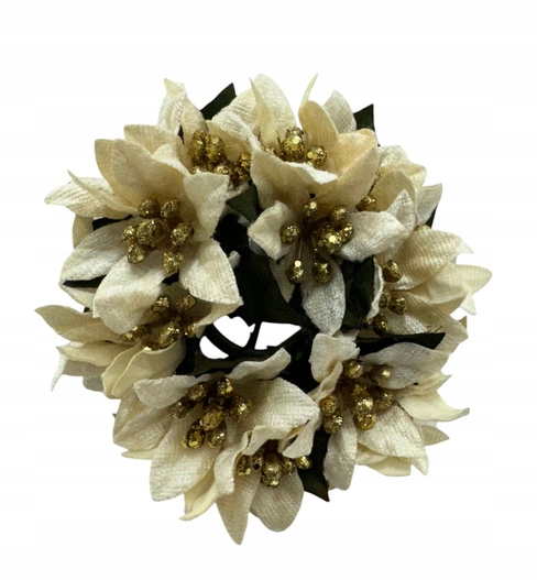 - Stroik do świeczki białe gwiazdy betlejemskie, złoty ryżyk 11 cm