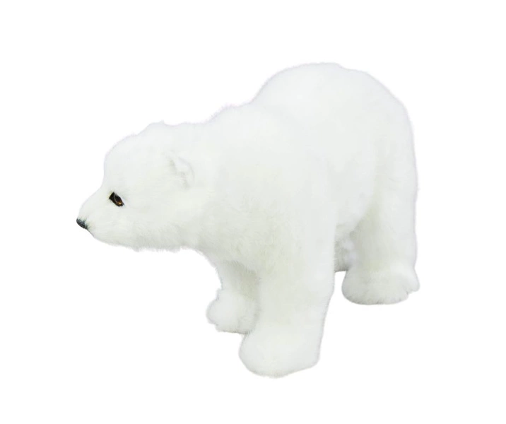 Uroczy niedźwiadek dekoracyjny w białym futerku, ustawiony na czterech łapach, o wymiarach 15x26 cm. Idealny do zimowych i świątecznych aranżacji – świetnie prezentuje się na komodzie, półce, przy choince. Starannie wykonany, miękki i przytulny, wprowadza do wnętrza ciepły, świąteczny klimat, dodając uroku każdemu pomieszczeniu.